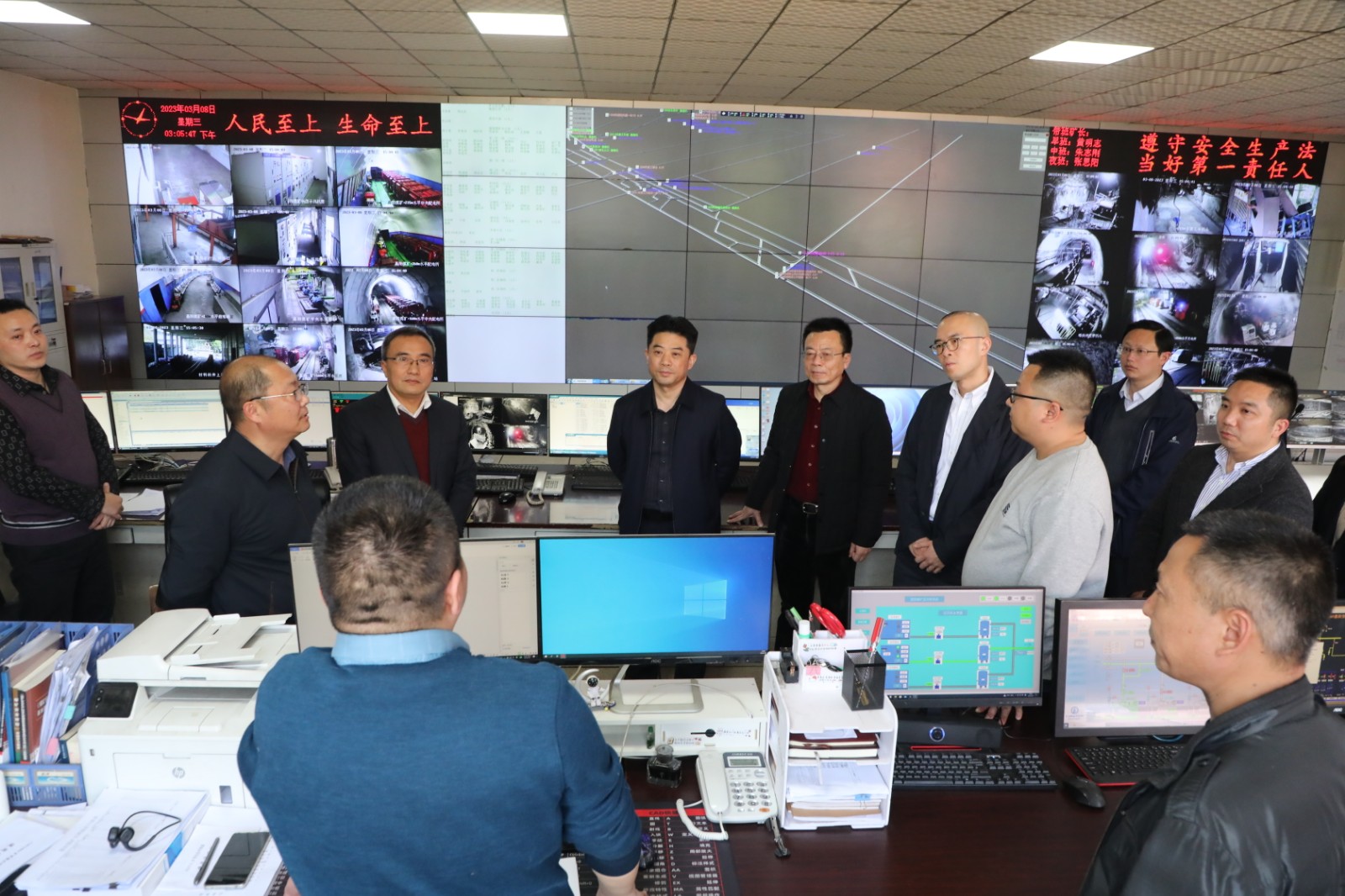符定平一行深入礦井監(jiān)控調(diào)度中心,了解安全生產(chǎn)、電煤保供、礦井智能化建設(shè)等情況,督導(dǎo)檢查煤礦貫徹落實(shí)習(xí)近平總書記關(guān)于安全生產(chǎn)重要指示精神,“兩會(huì)”期間安全生產(chǎn)工作情況等,并對(duì)調(diào)度中心工作人員崗位職責(zé)、應(yīng)急處置流程等進(jìn)行了提問,對(duì)嘉陽集團(tuán)著力推進(jìn)礦井智能化建設(shè),不斷夯實(shí)安全基礎(chǔ)方面所做的工作給予充分肯定。在嘉陽小火車躍進(jìn)站,符定平實(shí)地查看景區(qū)道路交通安全,了解花季之旅相關(guān)工作情況,強(qiáng)調(diào)指出,要認(rèn)真落實(shí)好各項(xiàng)安保措施,全力消除安全隱患,加強(qiáng)服務(wù)引導(dǎo),確保景區(qū)安全、有序。