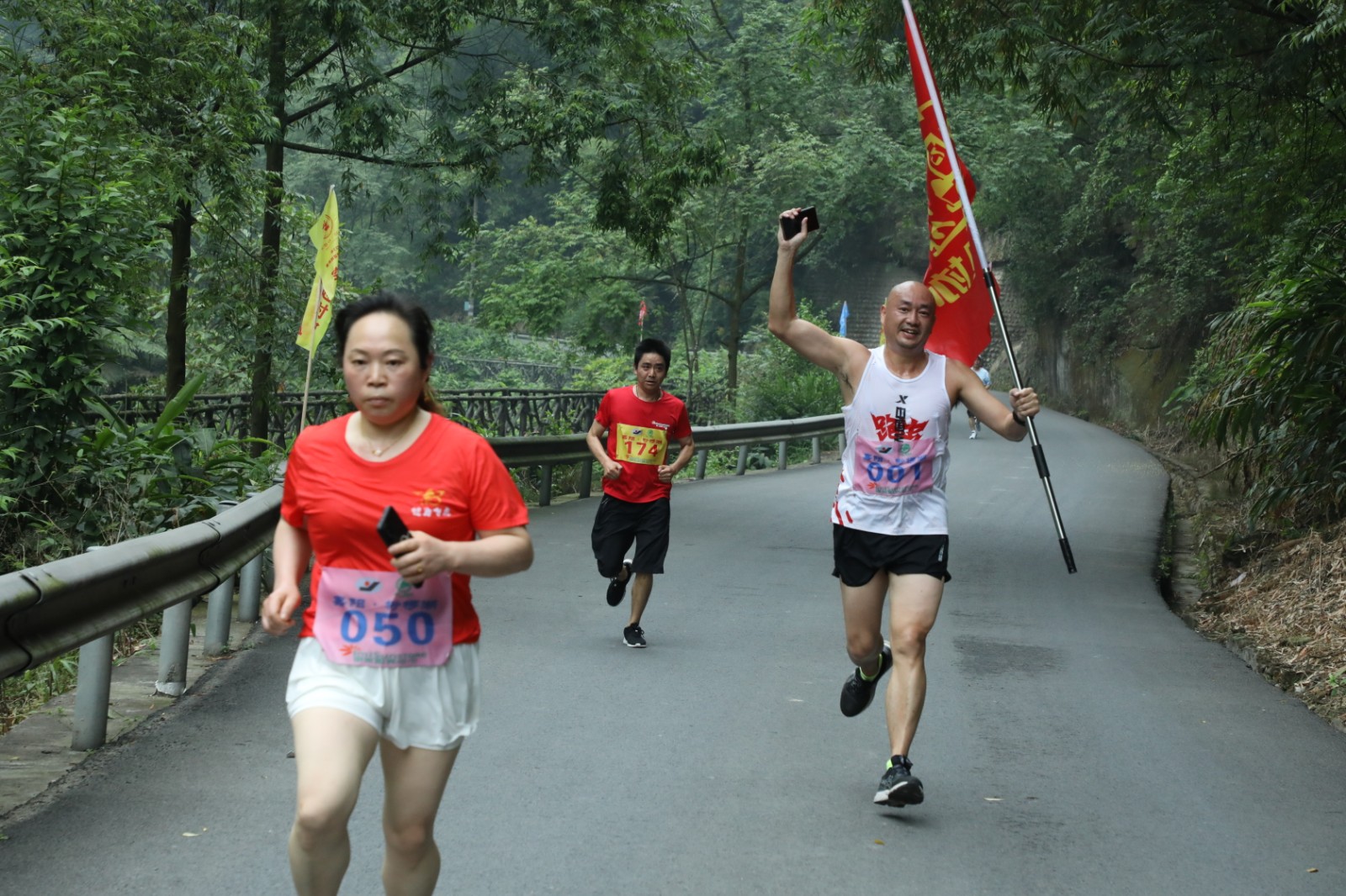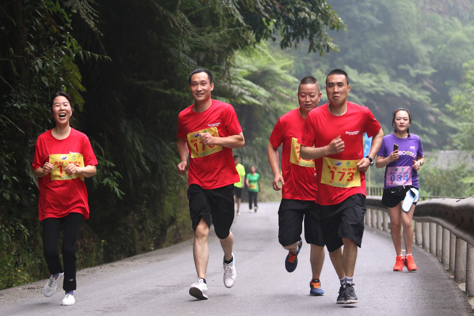 初夏的嘉陽·桫欏湖旅游環(huán)線空氣清新、風(fēng)景宜人,由集團(tuán)公司工會(huì)主辦、川投峨旅承辦、犍為跑協(xié)協(xié)辦的越野比賽起跑點(diǎn)設(shè)在芭溝毛澤東思想大舞臺前,活動(dòng)現(xiàn)場早已彩旗飄飄、樂聲陣陣,來自嘉陽集團(tuán)機(jī)關(guān)和二級單位、犍為縣跑協(xié)的男子組、女子組競技選手齊聚一堂,整裝待發(fā)。上午11時(shí),隨著響徹云霄的起跑槍響,選手如萬箭齊發(fā)一往無前,沿情人榕大橋、白石巖車站游客接待中心、侏欏紀(jì)探險(xiǎn)谷、順河橋、螞蝗溝等景點(diǎn)暢快奔跑,一路盡情體驗(yàn)越野跑帶來的快樂,欣賞景區(qū)旖旎的風(fēng)光,各單位的志愿者沿途不遺余力地為選手提供周到服務(wù)、加油助威,越野比賽成為綠水青山間的一道亮麗風(fēng)景線。