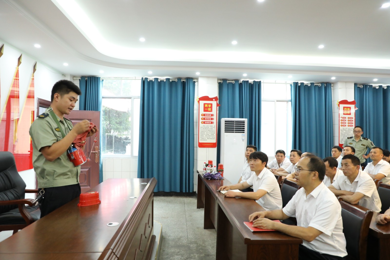 結(jié)合生產(chǎn)生活實(shí)際,救護(hù)隊(duì)員從應(yīng)急救援課件中遴選了急救章節(jié),以人體血液循環(huán)系統(tǒng)構(gòu)成為切入點(diǎn),系統(tǒng)講解傷員急救知識(shí)和應(yīng)急處置方法,側(cè)重于傷情判斷和分類、心跳呼吸驟停的搶救、止血章節(jié),特別對(duì)傷員傷情的判斷、真假死亡的判別、出血判定和止血方法選擇作了具體示范和剖析。隔絕式壓縮氧氣自救器培訓(xùn),救護(hù)隊(duì)員細(xì)化講解了操作要領(lǐng),以操作演示和職工人人動(dòng)手的方式加強(qiáng)糾錯(cuò)指導(dǎo),重點(diǎn)學(xué)習(xí)原理、結(jié)構(gòu)、使用條件、性能、佩戴使用方法,對(duì)關(guān)鍵操作反復(fù)進(jìn)行動(dòng)作分解,講解正確步驟。各隊(duì)職工主動(dòng)上臺(tái)動(dòng)手操作,按照救護(hù)隊(duì)員的指導(dǎo)糾正不規(guī)范動(dòng)作,鞏固了應(yīng)急操作技能。
