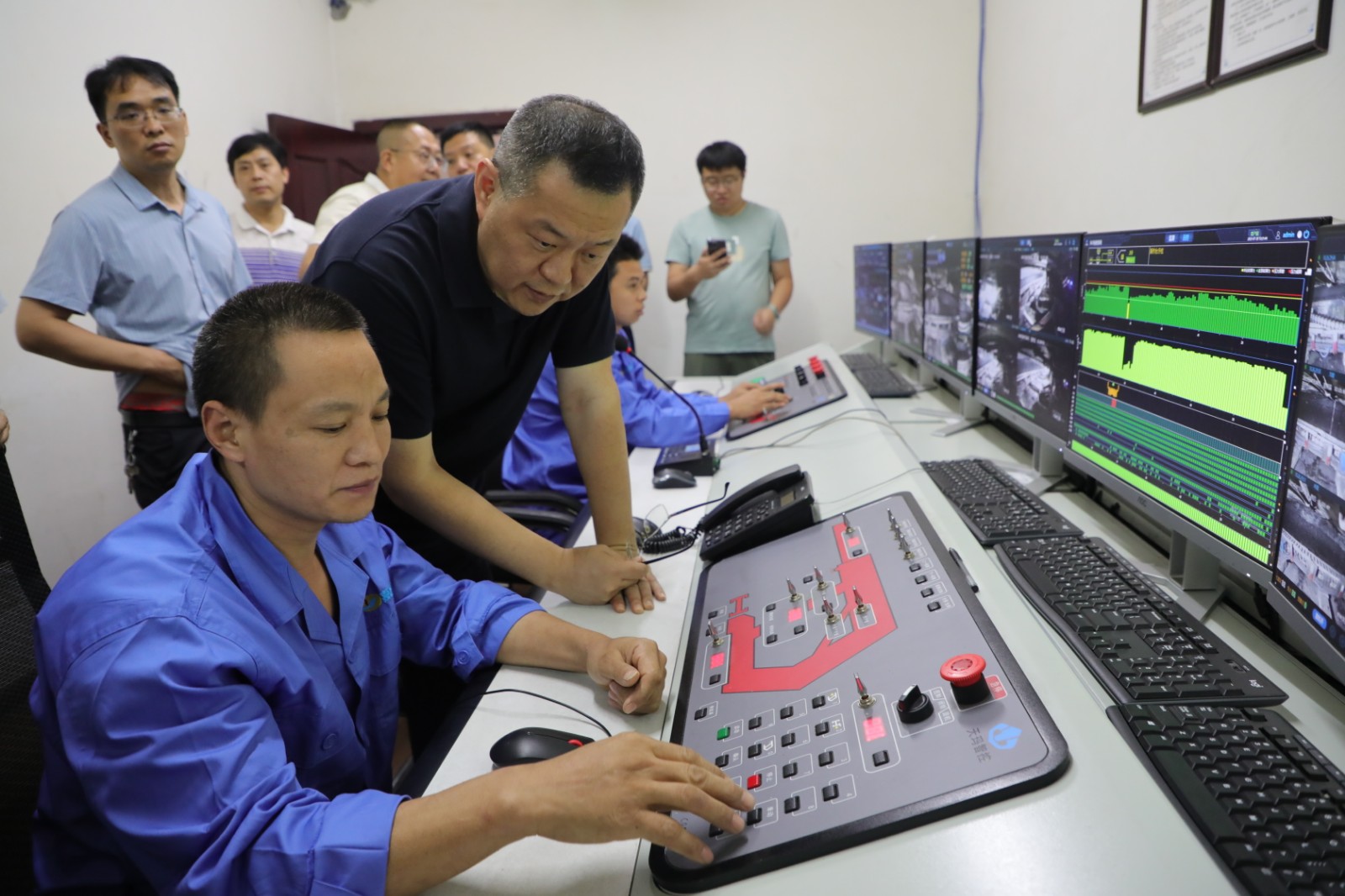 王峰副廳長(zhǎng)一行還前往嘉陽(yáng)煤礦采煤二隊(duì),實(shí)地參觀了嘉陽(yáng)煤礦智能化綜采無(wú)人工作面地面遠(yuǎn)程操控平臺(tái),興致勃勃地觀看了平臺(tái)現(xiàn)場(chǎng)演示,對(duì)嘉陽(yáng)高科技新技術(shù)的運(yùn)用連連稱贊。
