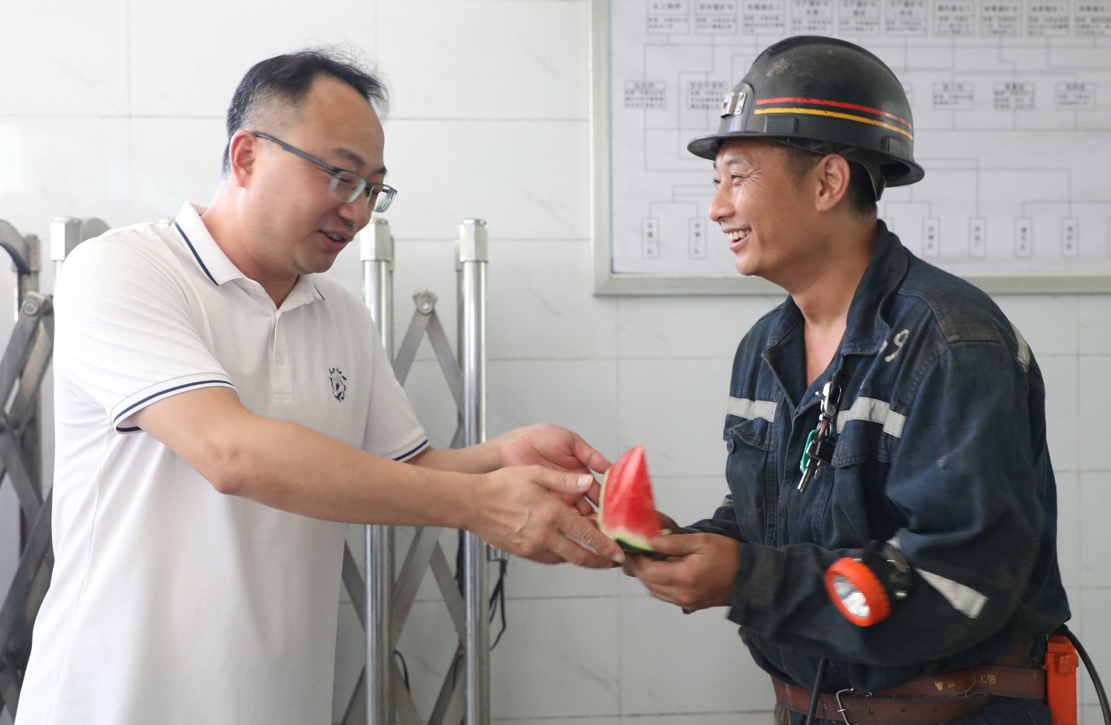 8月14日下午,集團(tuán)公司黨委副書記、工會(huì)主席謝建國(guó)一行到嘉陽(yáng)煤礦為一線職工送清涼,把惠民生、暖民心、順民意工作做到職工心坎上。