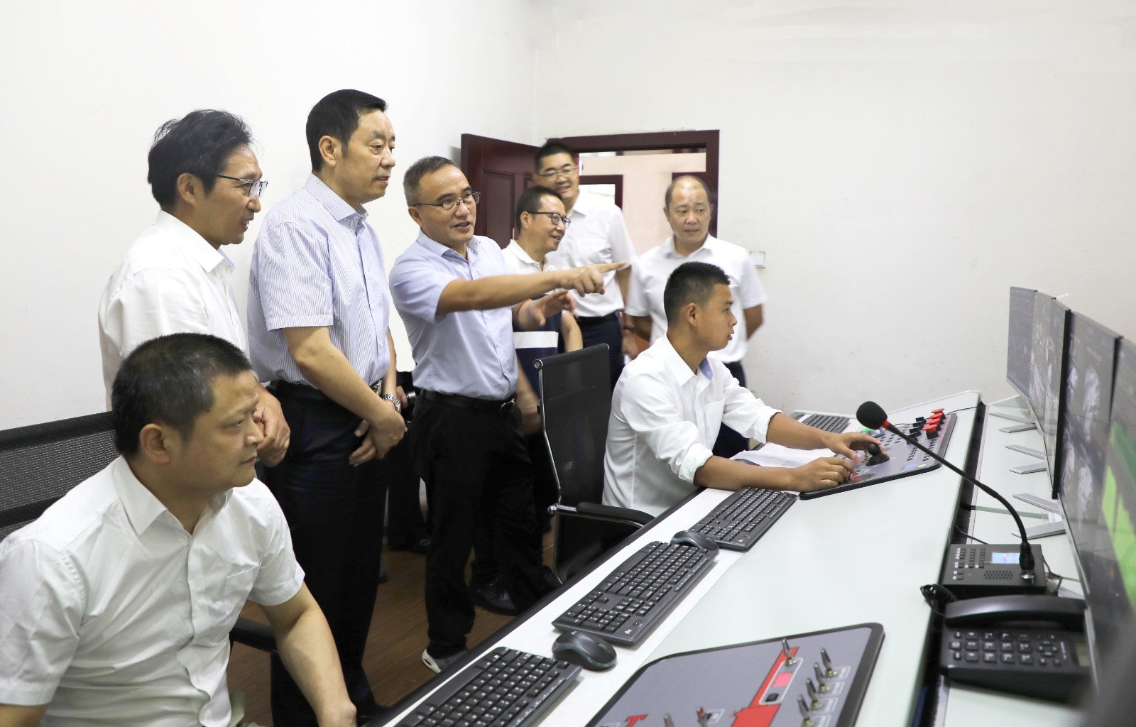 鄧凱一行深入嘉陽(yáng)煤礦礦井調(diào)度監(jiān)控中心、智能化采煤遠(yuǎn)控操作平臺(tái),實(shí)地檢查安全生產(chǎn)情況。聽(tīng)取嘉陽(yáng)集團(tuán)防災(zāi)減災(zāi)和安全生產(chǎn)工作情況匯報(bào),對(duì)“地面規(guī)劃采煤、裝備自動(dòng)執(zhí)行、面內(nèi)無(wú)人作業(yè)”的遠(yuǎn)程無(wú)人智能化采煤新模式表示肯定。他指出,嘉陽(yáng)的安全工作領(lǐng)導(dǎo)重視,工作比較扎實(shí),但安全工作沒(méi)有終點(diǎn)只有起點(diǎn),大家務(wù)必要保持清醒頭腦,持之以恒、常抓不懈。