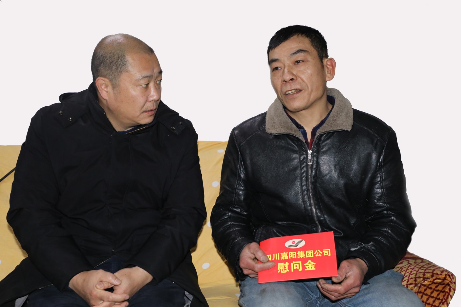 在石溪8號樓,黨委副書記、總經(jīng)理范勤英看望慰問嘉陽煤礦掘進(jìn)工鄧先平,鄧先平因妻子和女兒都身患重疾,個人收入也不高,精神壓力比較大,范勤英耐心傾聽鄧先平心聲,給予他安慰和鼓勵,希望他正確面對困難和壓力,全家人要一起過一個平安祥和的春節(jié)。