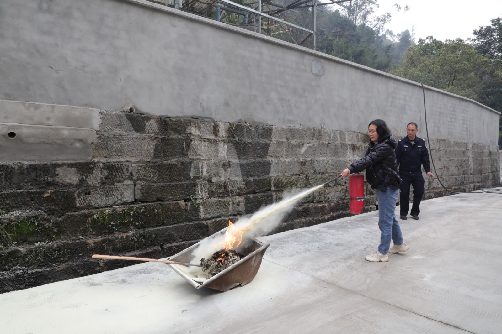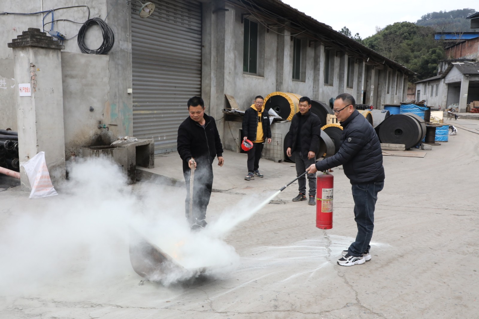 3月13日-14日,物資供銷公司結(jié)合工作特點(diǎn),有針對(duì)性地組織開展了防災(zāi)減災(zāi)綜合應(yīng)急演練。演練開始前,安全員組織集中學(xué)習(xí)了應(yīng)急處置預(yù)案。演練分為應(yīng)急逃生疏散和消防器材使用兩部分。隨著一陣急促的警報(bào)聲響起,模擬發(fā)生火災(zāi)、地質(zhì)災(zāi)害、地震時(shí),庫(kù)區(qū)工作人員緊急疏散逃生,快速、有序、安全撤離到避險(xiǎn)區(qū)域,演練旨在讓庫(kù)管員熟悉疏散路線,提高安全意識(shí)和自救自護(hù)能力。另一項(xiàng)演練內(nèi)容為消防器材的使用,鋪設(shè)水帶、連接水槍,熟悉和掌握滅火器的操作要領(lǐng)等。演練現(xiàn)場(chǎng)安全員從旁示范,強(qiáng)調(diào)注意事項(xiàng):“鋪設(shè)水帶前應(yīng)檢查水帶及接頭是否良好;當(dāng)油料庫(kù)、?;穾?kù)著火時(shí),嚴(yán)禁使用消防水進(jìn)行滅火;使用滅火器時(shí)應(yīng)該注意,人要站在上風(fēng)口方向1.5米至2米處對(duì)準(zhǔn)火源根部……”在學(xué)習(xí)了操作要領(lǐng)和注意事項(xiàng)后,大家輪番上陣爭(zhēng)相上手操作,進(jìn)一步掌握了消防器材的使用。