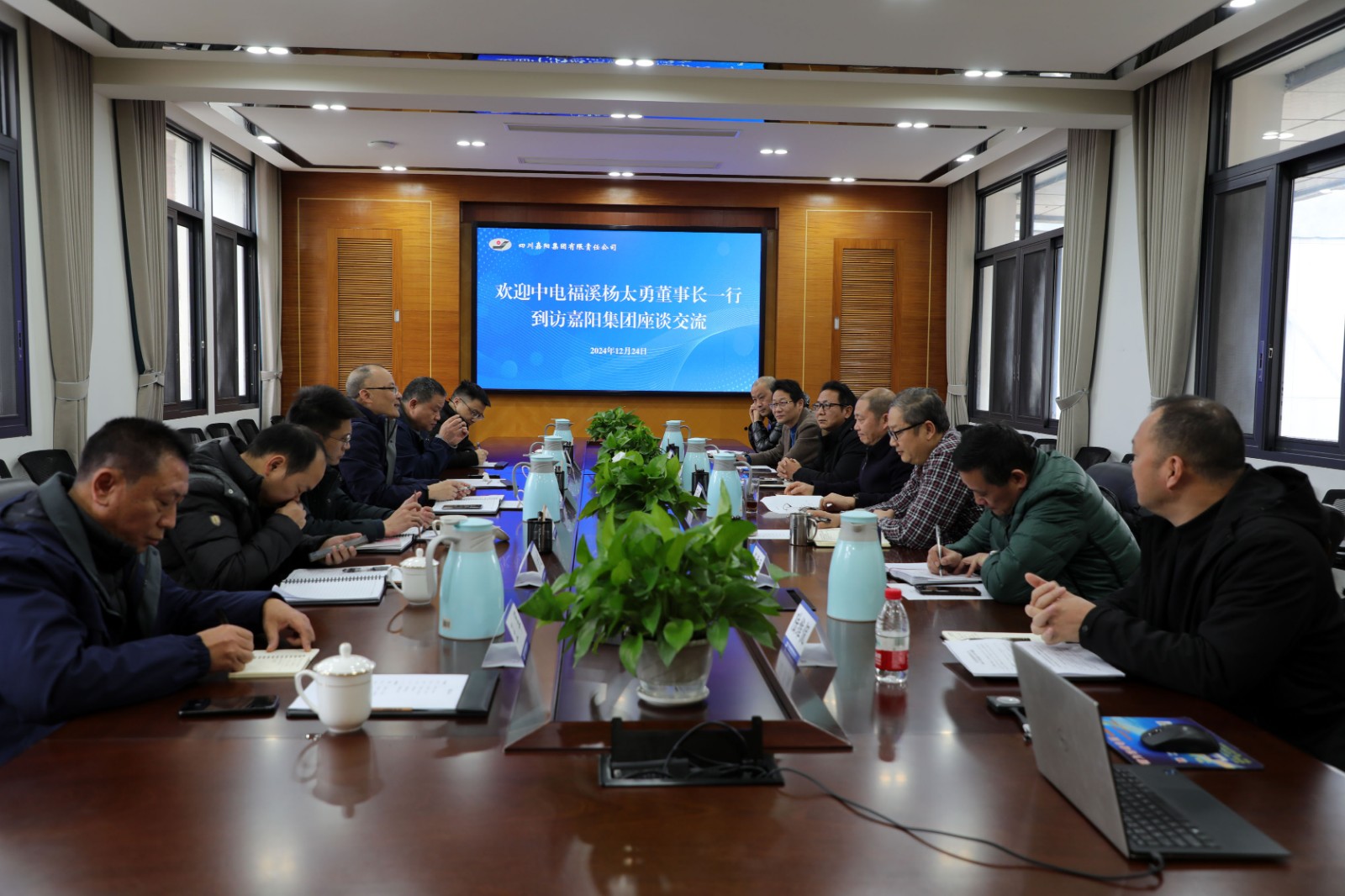 12月24日,中電福溪電力開(kāi)發(fā)有限公司黨委書記、董事長(zhǎng)楊太勇一行到訪嘉陽(yáng),雙方就合作事宜進(jìn)行了座談交流。