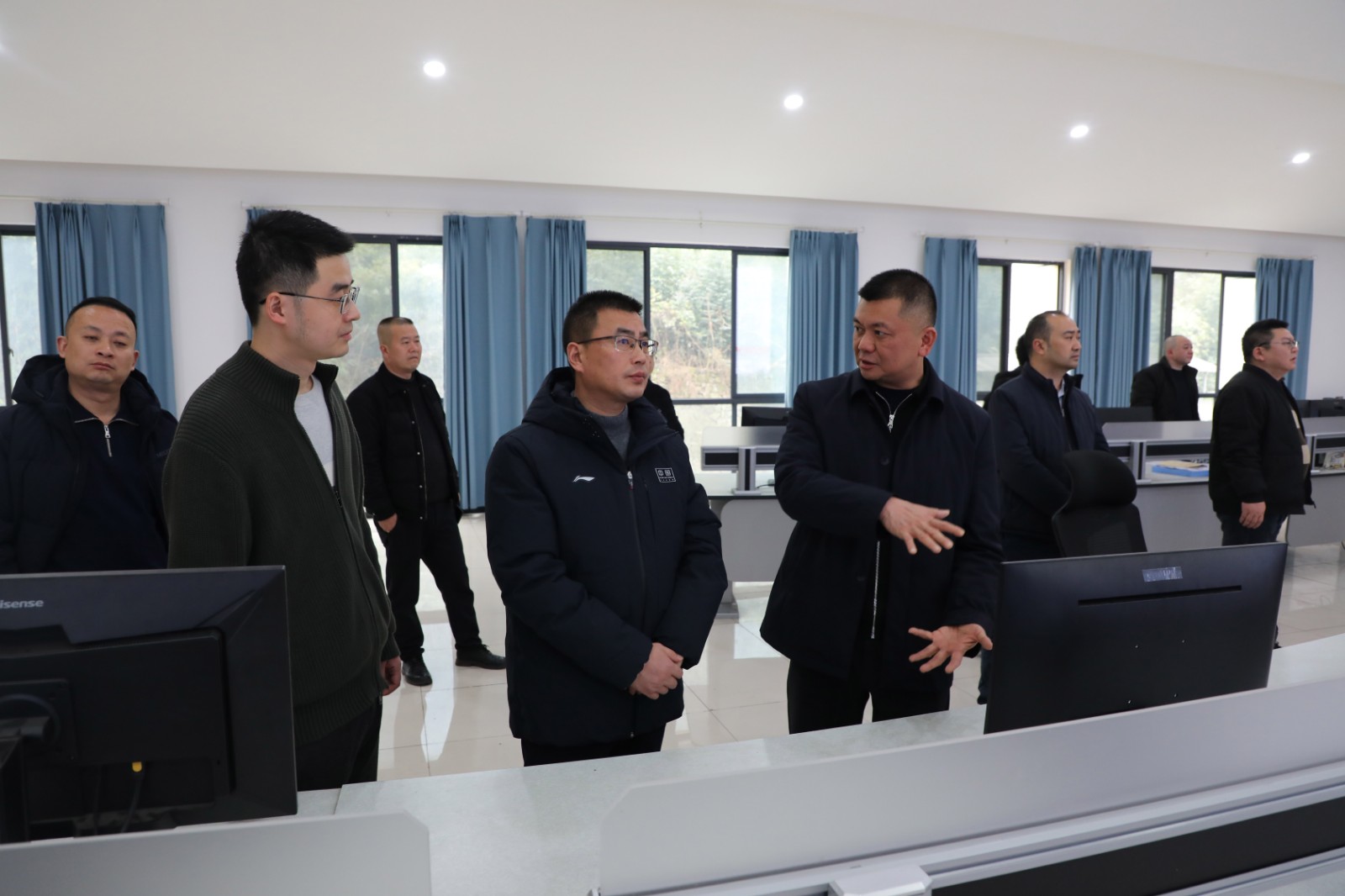 在嘉陽煤礦調(diào)度中心,張德平一行聽取嘉陽煤礦相關負責人的匯報,詳細了解入井人數(shù)、人員定位系統(tǒng)以及電煤供應、安全生產(chǎn)措施落實和節(jié)日值班值守等情況。