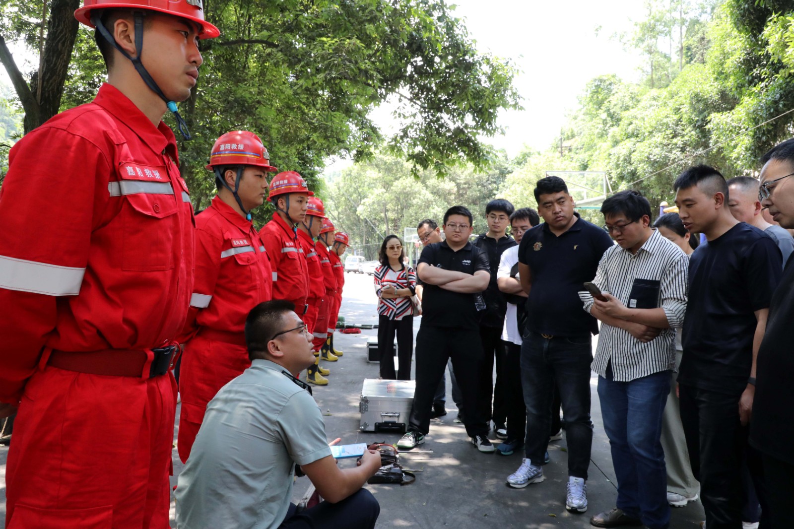 觀摩團觀看了集團公司企業(yè)宣傳片《礦山脊梁》、嘉陽礦山救護隊宣傳片《生命之光》,實地察看了礦山救護隊生活訓練場所,裝備器械管理場所,通過詢問了解礦山救護隊機構設置、組織架構、管理模式、制度辦法、設施裝備以及日常訓練等相關內容。隨后,礦山救護隊員們向觀摩團展示了自救器、蘇生器、破拆、液壓起重、災區(qū)電話等儀器操作使用,模擬演示了礦山救護隊進入災區(qū)現(xiàn)場,開展止血、包扎、固定、搬運等創(chuàng)傷急救環(huán)節(jié),全過程展示了聞警出動、戰(zhàn)前檢查、高倍數(shù)泡沫滅火機滅火、氧氣瓶互換、總結講評的綜合演練。隊員們飽滿的精神狀態(tài)和嫻熟的操作技藝獲得了觀摩團高度稱贊。大家表示,此次觀摩學到了很多實用的知識,進一步加深了對非煤礦山應急救援隊伍組建、日常訓練管理、綜合實戰(zhàn)演訓的認識。