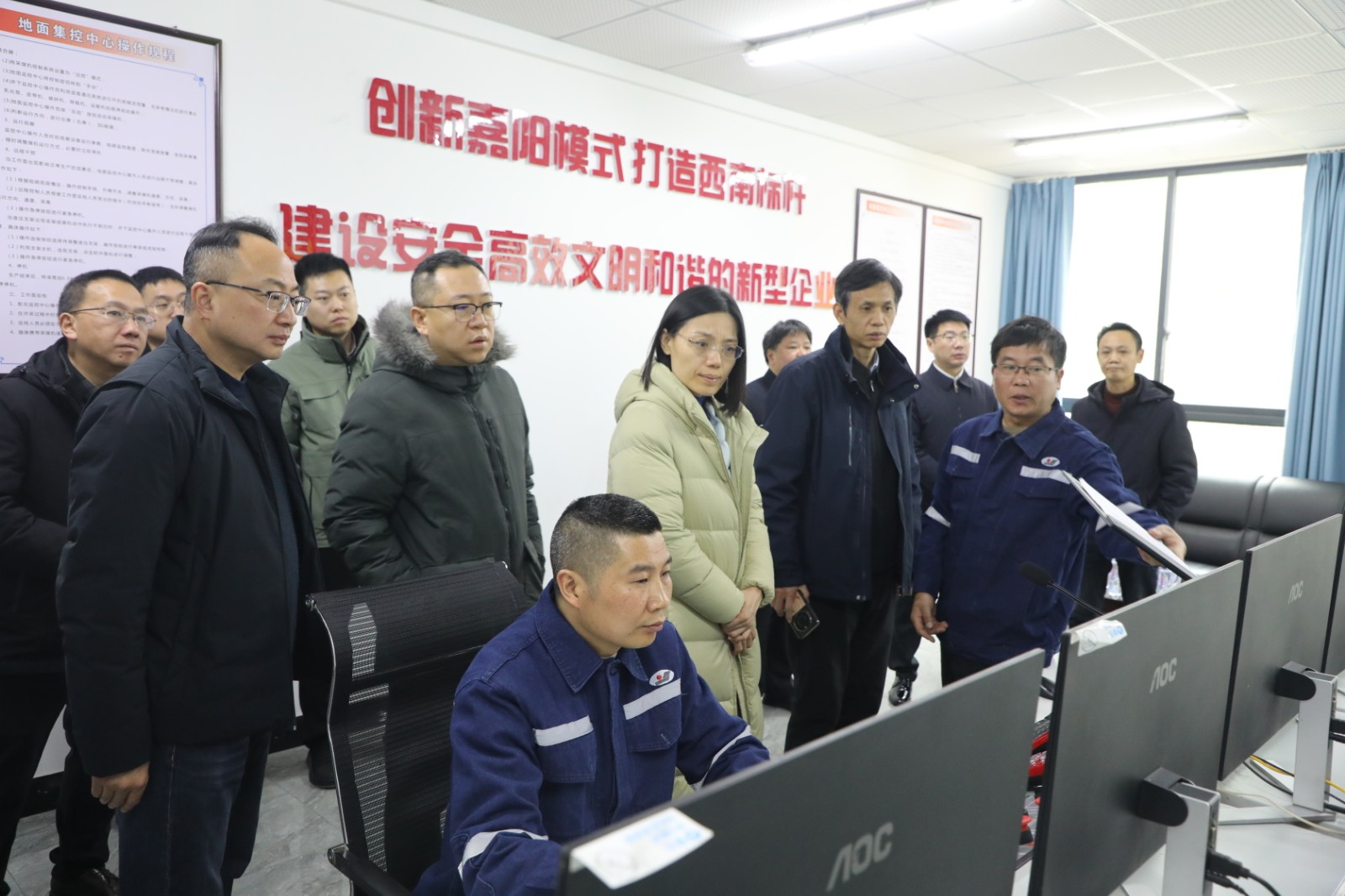 調(diào)研緊扣礦山安全法修訂核心需求,旨在通過實(shí)地考察基層礦山安全生產(chǎn)實(shí)踐,收集智能化轉(zhuǎn)型、隱患治理等方面的鮮活經(jīng)驗(yàn),為法律修訂提供堅(jiān)實(shí)的實(shí)踐支撐。調(diào)研組一行在嘉陽煤礦調(diào)度中心、智能化采煤隊(duì)集控室了解了生產(chǎn)調(diào)度情況,安全視頻AI分析系統(tǒng)、電力智能管控體系等“智改數(shù)轉(zhuǎn)”建設(shè)成果,對(duì)企業(yè)以“AI+安防”推動(dòng)安全管理向數(shù)據(jù)決策轉(zhuǎn)變的創(chuàng)新舉措給予肯定;深入1207智能化采煤工作面,實(shí)地察看了薄煤層開采流程、智能化設(shè)備協(xié)同運(yùn)作及安全實(shí)時(shí)管控情況,重點(diǎn)了解遠(yuǎn)程操控、風(fēng)險(xiǎn)預(yù)警等安全生產(chǎn)關(guān)鍵環(huán)節(jié)。同時(shí),關(guān)切詢問了企業(yè)管理人員及普通職工收入情況,關(guān)注安全生產(chǎn)與職工權(quán)益保障的協(xié)同發(fā)展。調(diào)研組指出,嘉陽集團(tuán)在煤炭資源稟賦不足的情況下,堅(jiān)守“科技興安、科技興企”理念,實(shí)現(xiàn)安全生產(chǎn)2869天的成績(jī),其智能化改造、標(biāo)準(zhǔn)化生產(chǎn)等實(shí)踐經(jīng)驗(yàn),對(duì)礦山安全法修訂中強(qiáng)化科技賦能、壓實(shí)主體責(zé)任等條款具有重要參考價(jià)值。