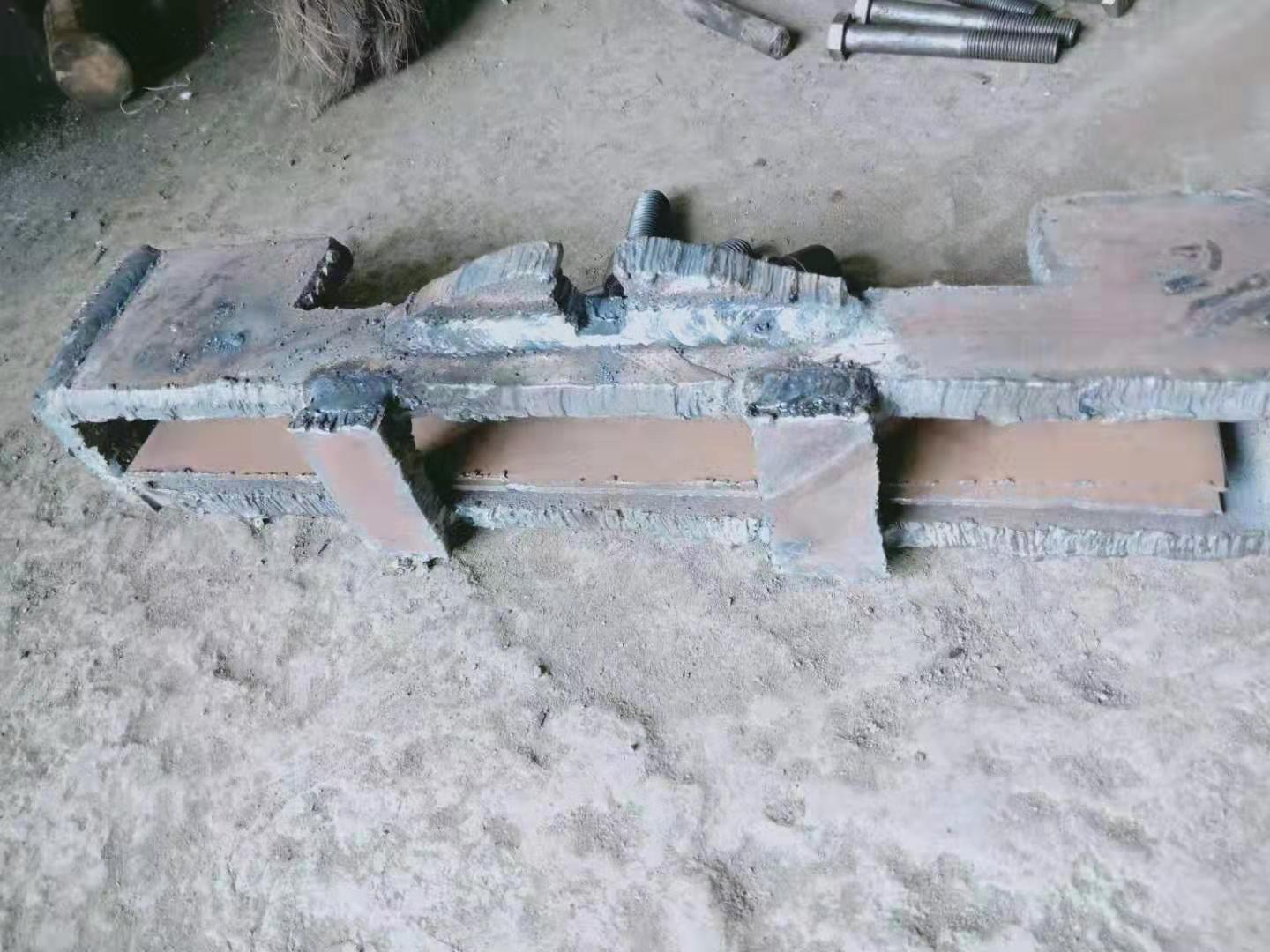 針對(duì)滑靴踏板在生產(chǎn)作業(yè)時(shí)易磨損,且滑靴不方便維修的問(wèn)題,職工們利用廢棄的溜槽自制了踏板腳套加固在踏板上,這樣不僅增加了踏板的耐磨度,同時(shí)也讓割煤機(jī)與刮板運(yùn)輸機(jī)之間的距離變得更高,方便插銷更換和滑靴維修。