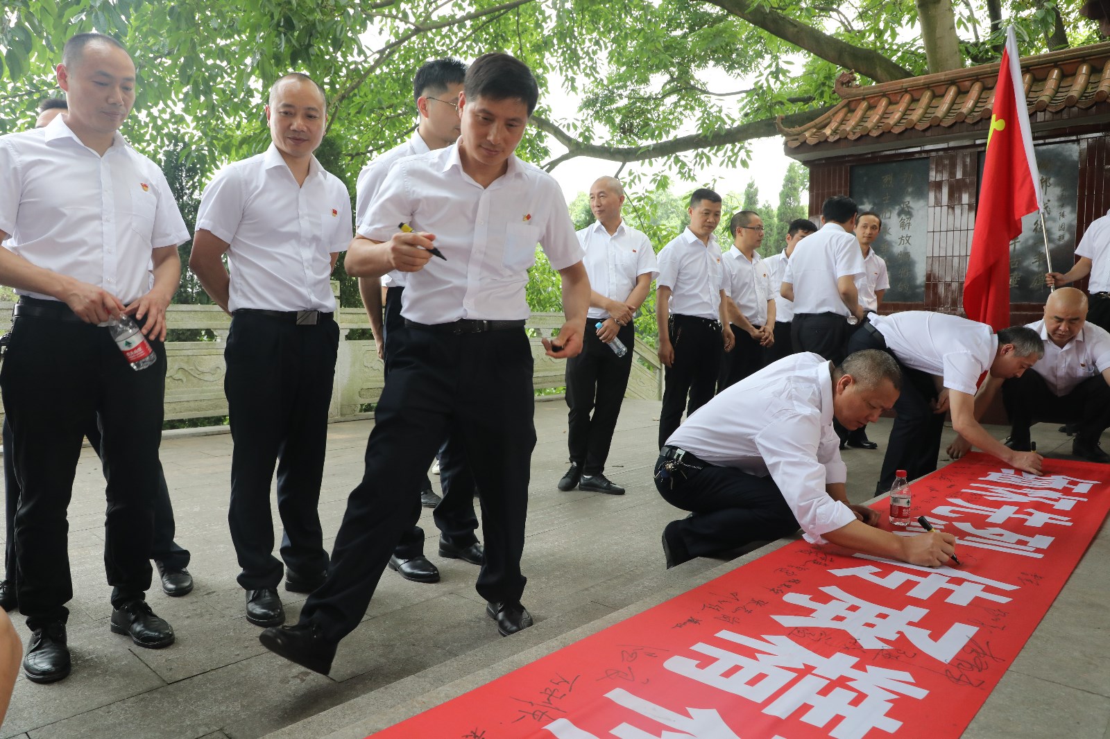當天下午3時許,36名黨員干部整齊列隊緩緩走向“竹園鋪戰(zhàn)斗勝利紀念碑”,在紀念碑前,全體黨員懷揣著對革命先烈的敬仰之情齊唱國歌,在采掘副總工程師李有平帶領下重溫入黨誓詞,抒發(fā)著內心至真至純的愛黨愛國情懷。隨后,兩名黨員為烈士敬獻花圈,采掘副總工程師李有平,地測副總工程師、礦辦第二支部書記劉上安上前向紀念碑鞠躬并整理挽聯(lián),其余黨員有序走到紀念碑前為烈士敬獻鮮花。在烈士墓地,全體黨員神情凝重緩緩而行,回顧革命先烈浴血奮戰(zhàn)的幕幕場景,感觸和平來之不易。在紀念園涼亭中,全體黨員圍坐于四周聆聽礦辦一支部書記萬利東講黨課,來自采一隊、掘一隊、通風隊的三名黨員代表暢談黨史學習體會,每名黨員通過黨史學習教育有所悟、有所思,更加堅定了克服煤礦安全壓力大、生產任務重、點多面廣戰(zhàn)線長等困難的決心,紛紛表示理應繼承和發(fā)揚“艱苦創(chuàng)業(yè),求實奮進”的嘉陽精神,在深化改革的洪流之中“燃燒”自己、奉獻力量,助推企業(yè)持續(xù)健康發(fā)展?;顒痈叱保w黨員干部在烈士紀念園作出全力抓好安全生產的鄭重承諾,并在主題橫幅上集體簽名。(遙測維修班班長余雪同期聲)