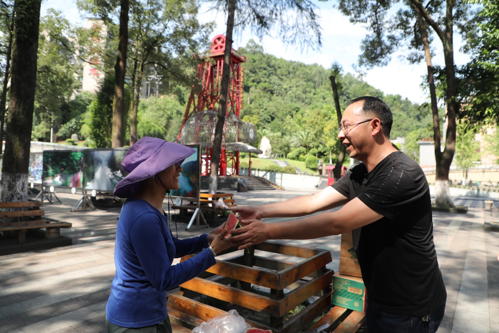 公司機關(guān)四支部帶著防暑降溫慰問品依次來到綜合服務(wù)隊作業(yè)現(xiàn)場和環(huán)衛(wèi)班聚集地為他們送去組織的關(guān)懷,并檢查對應(yīng)工作場所防暑降溫措施落實情況。慰問組一邊招呼大家停下手中的工作休息,一邊將西瓜、礦泉水等解暑飲品送到職工手中,并關(guān)切地詢問職工工作、生活等情況,囑咐大家在高溫作業(yè)時,要注意防暑降溫,提高安全意識,確保自身身體健康和企業(yè)安全生產(chǎn)。