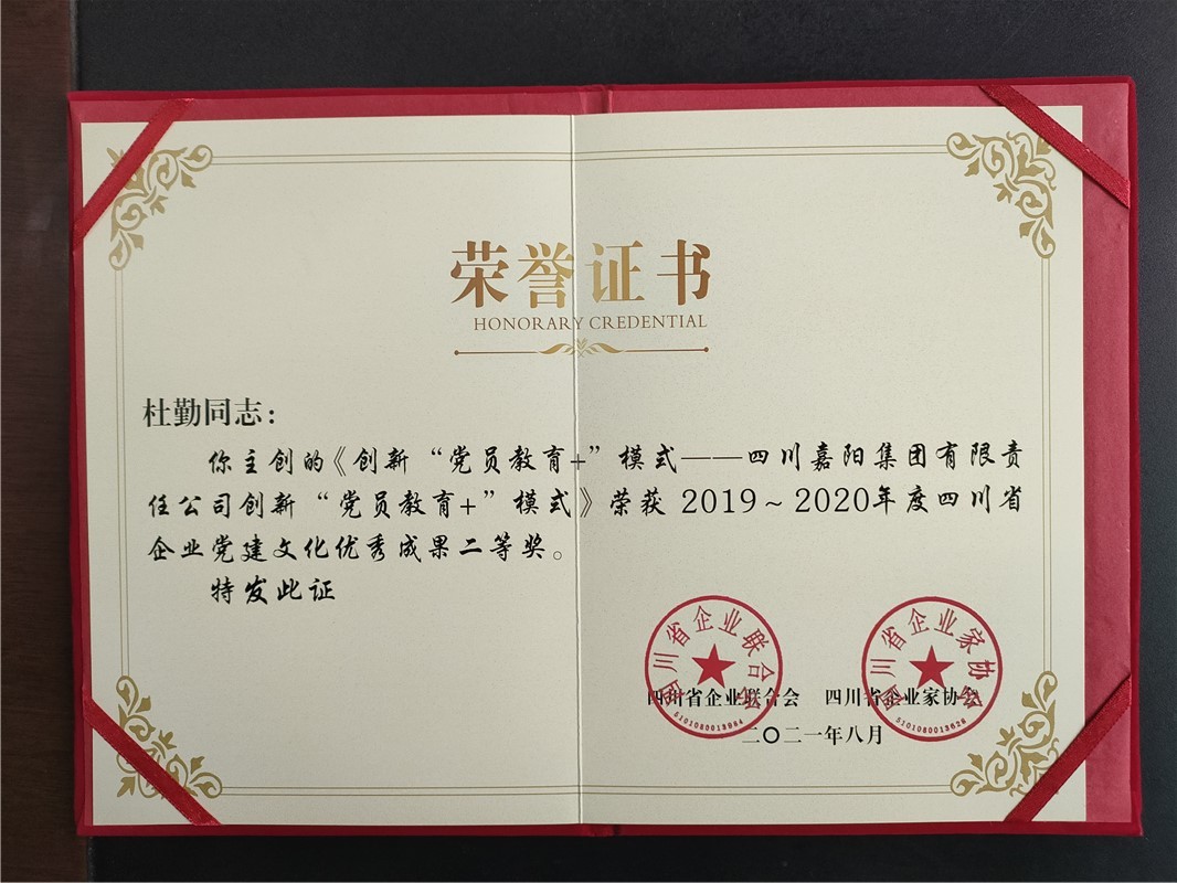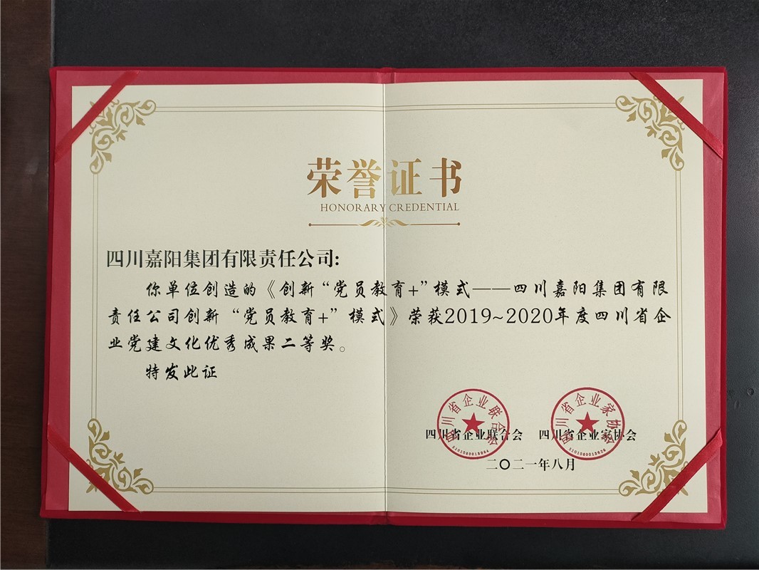 黨建引領(lǐng),文化鑄魂,嘉陽(yáng)集團(tuán)多年來在黨建文化領(lǐng)域深耕細(xì)作,成績(jī)斐然。四川省企業(yè)聯(lián)合會(huì)、四川省企業(yè)家協(xié)會(huì)聯(lián)合開展2019—2020年度四川省企業(yè)文化建設(shè)優(yōu)秀成果評(píng)選活動(dòng),嘉陽(yáng)集團(tuán)以《創(chuàng)新“黨員教育+”模式》為題參選,主創(chuàng)人為黨委書記、董事長(zhǎng)杜勤、川投峨旅黨總支副書記袁成方,參創(chuàng)人為黨委副書記謝建國(guó)。通過申報(bào)、推薦、初評(píng)、專家評(píng)審等相關(guān)程序,嘉陽(yáng)集團(tuán)在眾多企業(yè)中脫穎而出,榮獲四川省企業(yè)黨建文化優(yōu)秀成果二等獎(jiǎng)。嘉陽(yáng)集團(tuán)將再接再厲,進(jìn)一步加強(qiáng)黨建文化建設(shè),促進(jìn)企業(yè)實(shí)現(xiàn)高質(zhì)量發(fā)展。