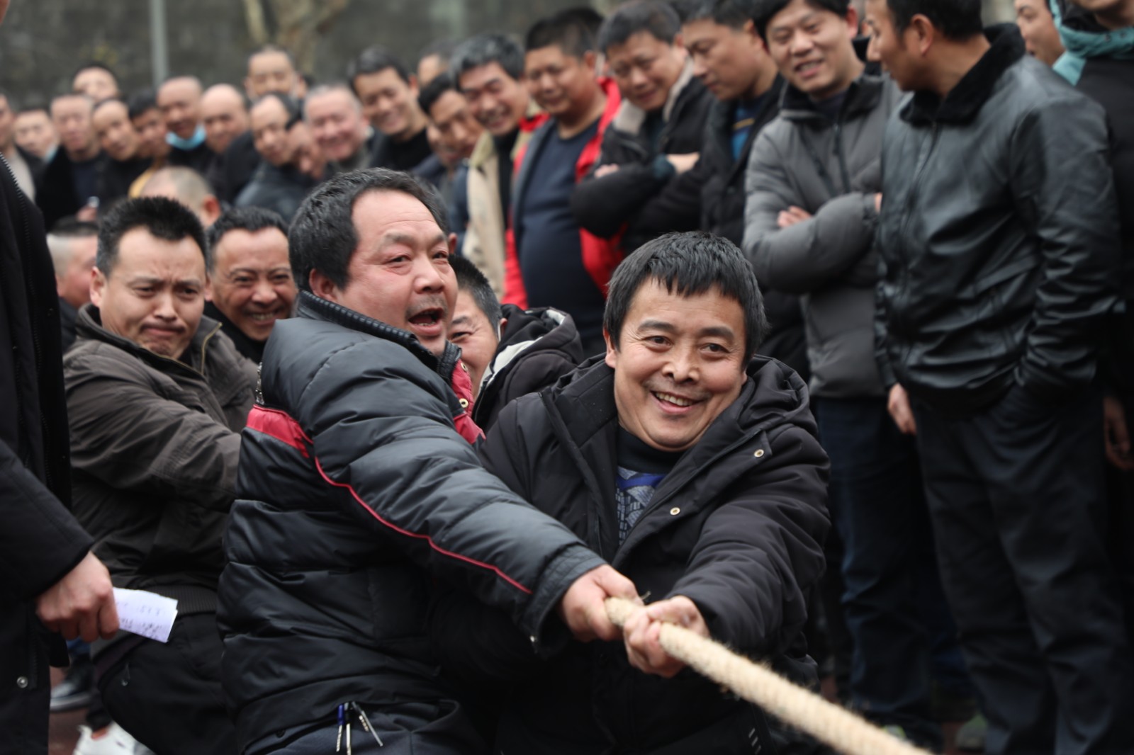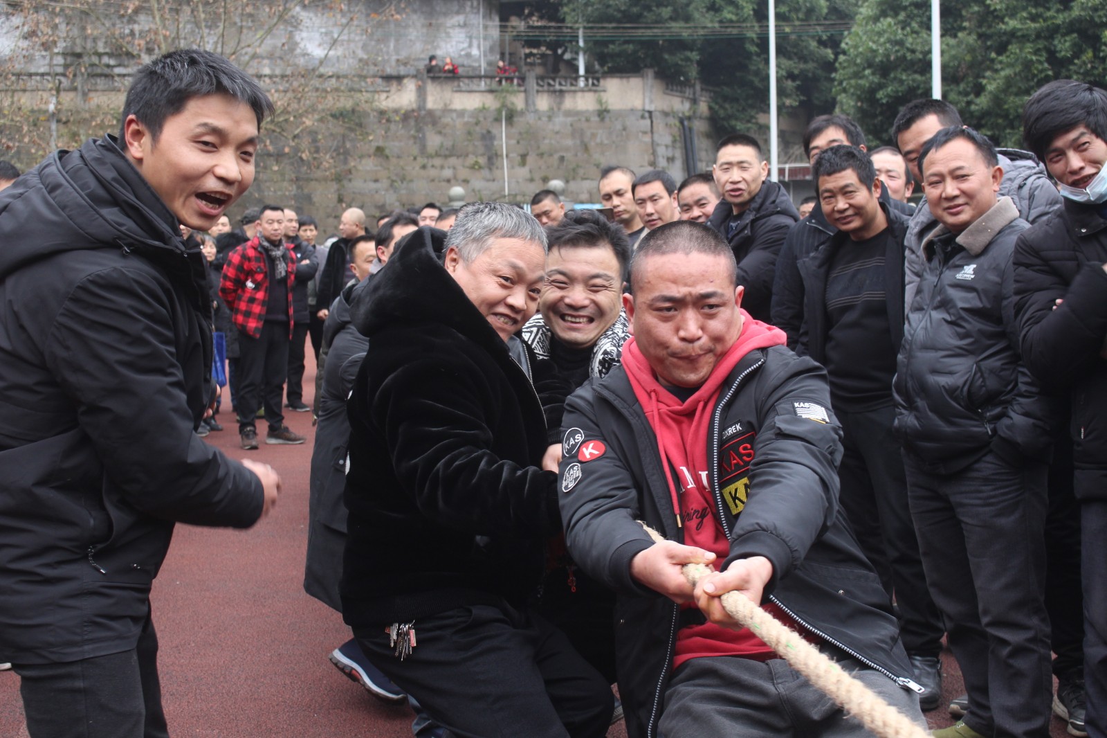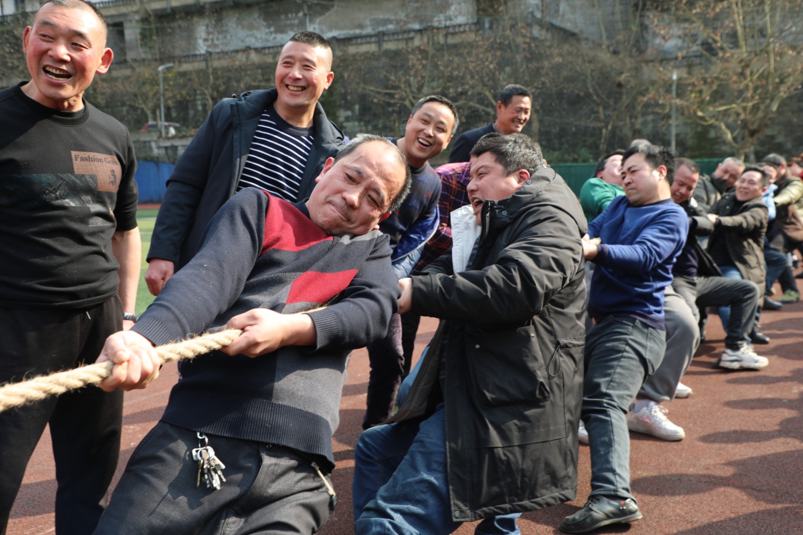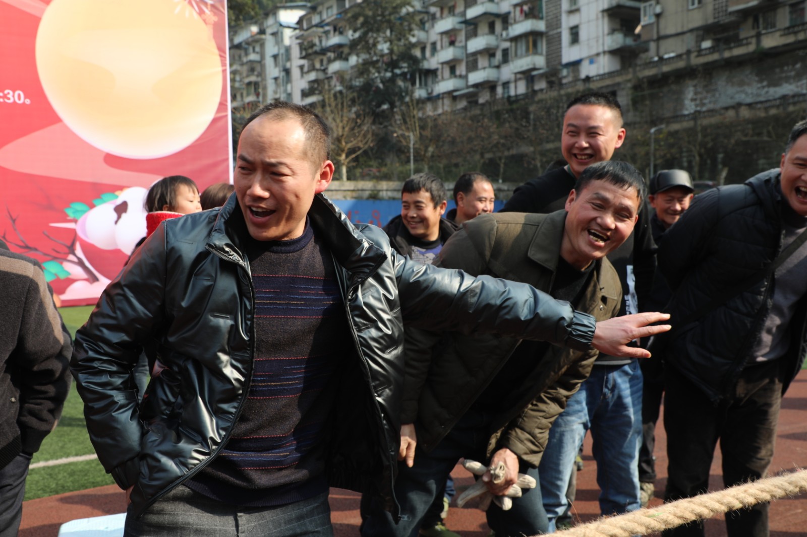嘉陽煤礦職工拔河比賽于14日、15日下午在礦區(qū)足球場舉行,共24支隊伍390余人參賽。比賽分為淘汰賽、決賽兩個階段,采用三局二勝制。比賽一開始各隊都氣勢如虹,蓄力鼓勁,隊員們心往一處想,勁往一處使,觀眾們情緒高漲,吶喊助威聲此起彼伏,經(jīng)過激烈角逐,掘二隊摘得桂冠,掘三隊和采二隊分別獲得亞軍、季軍。