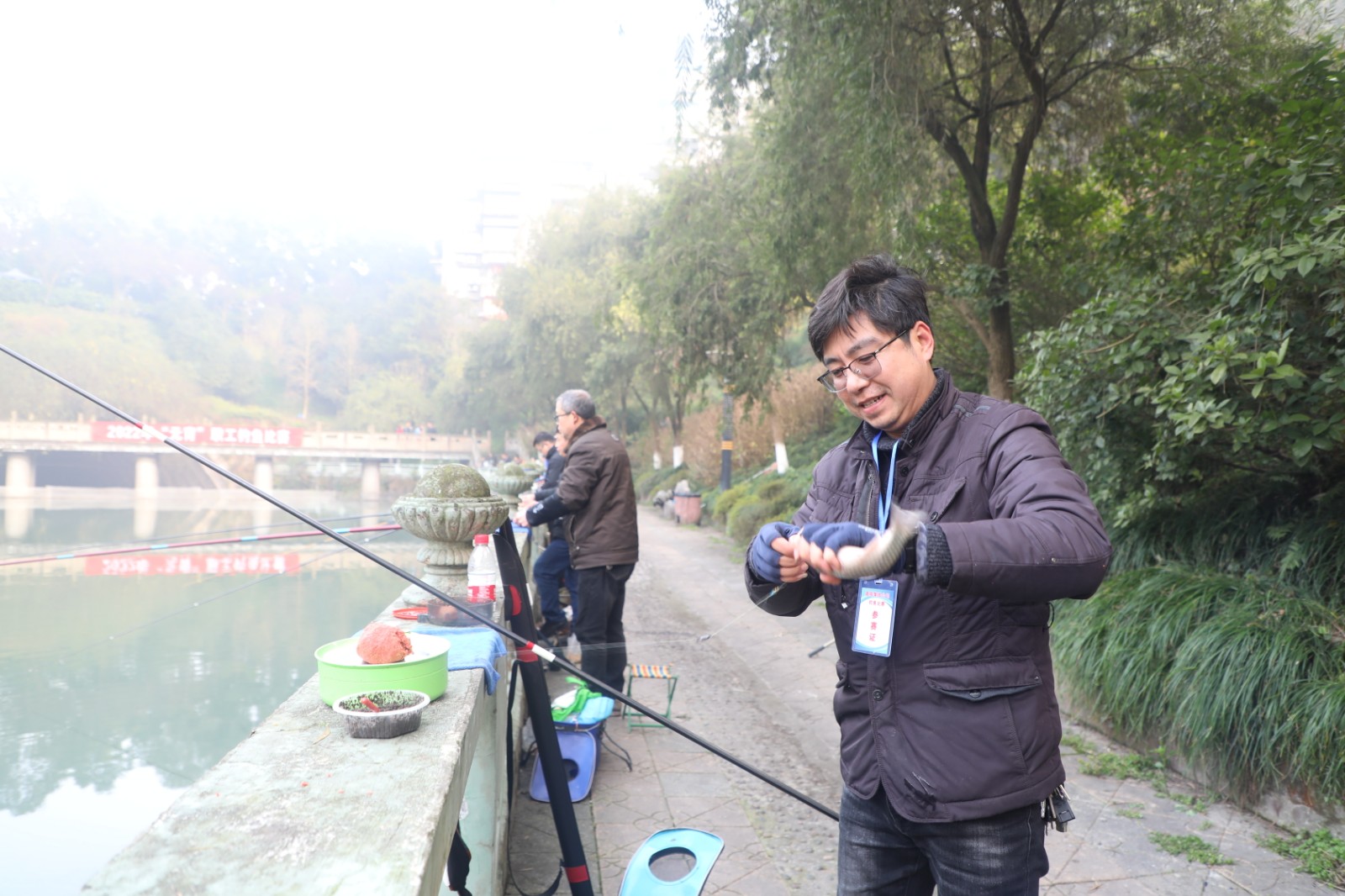 礦區(qū)觀音溪釣魚比賽現(xiàn)場熱鬧非凡。15日早上7:30,經(jīng)過現(xiàn)場抽簽后選手們進入各自的釣位,撐桿、掛鉺、拋鉤一氣呵成,靜待魚兒上鉤。薄霧散去,當溫暖的陽光照耀水面,魚兒似乎才開始活躍起來,“嘿,咬鉤了、咬鉤了,還是條大魚,穩(wěn)住……”只見釣桿如弓,參賽選手憋著勁身子左右擺動,時而前進時而后退,神情緊張但卻不慌亂,再看魚兒拍水,時而下潛,時而翻滾,不一會的功夫,已經(jīng)沒有了力氣,乖乖地被提起放進魚護。釣魚之樂不僅在于享受收獲時帶來的小歡喜,更多的是能擁有一份悠然自得和平靜閑暇的心境。經(jīng)過三個小時的角逐,嘉陽煤礦一隊獲得第一名,公司機關獲得第二名,煤礦二隊獲第三名。