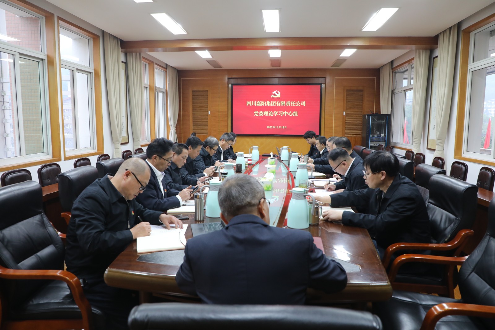 11月18日,嘉陽集團(tuán)黨委理論中心組深入學(xué)習(xí)黨的二十大精神,黨委書記、董事長杜勤主持。