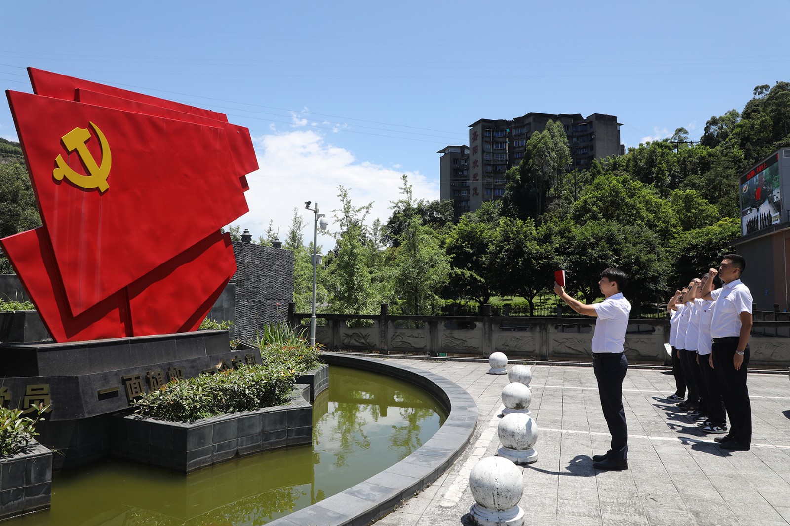 7月1日,集團(tuán)公司舉行新黨員入黨宣誓儀式,來自機(jī)關(guān)和基層各單位的5名新黨員仰望黨旗莊嚴(yán)宣誓。
