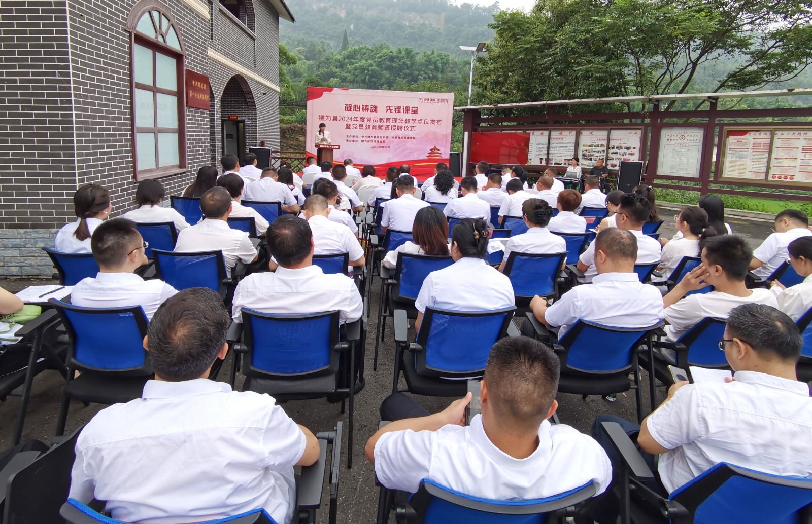 6月25日上午,犍為縣黨員教育現(xiàn)場(chǎng)教學(xué)點(diǎn)位發(fā)布暨黨員教育師資授聘儀式在小市村“中共犍為縣第一個(gè)支部陳列室”舉行,嘉陽煤礦等13個(gè)單位獲犍為縣首批黨員教育現(xiàn)場(chǎng)教學(xué)點(diǎn)授牌,沈忱等57人被納入犍為縣黨員教育師資庫。