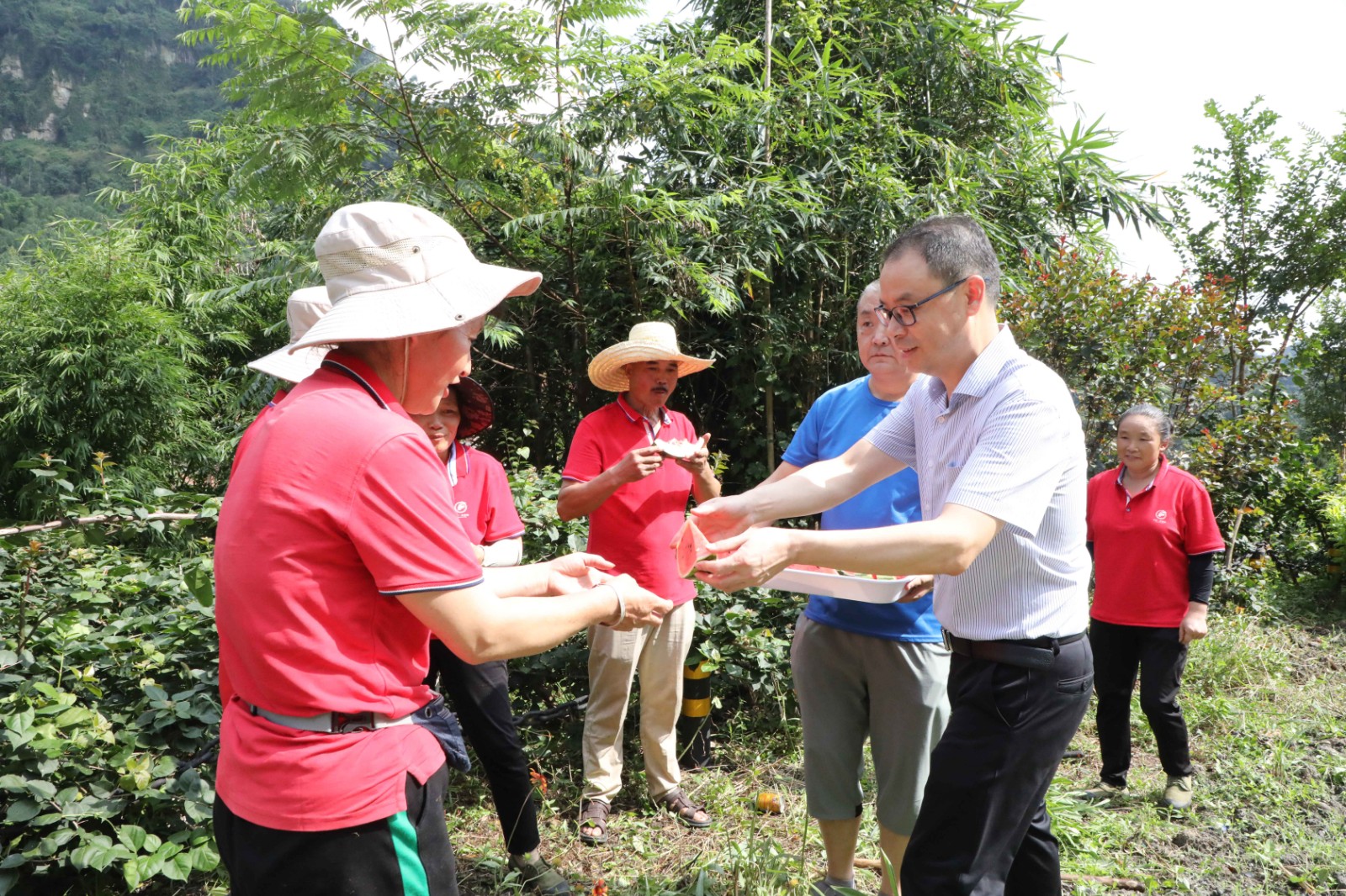 “把手里的活放一放,吃口西瓜解解暑,喝口水涼快涼快”,呂明強一邊招呼著職工們,一邊將切好的西瓜送到職工手中,機關第一黨支部支委成員也將一瓶瓶礦泉水遞到職工手上。職工們吃著清甜可口的西瓜,喝著解暑的礦泉水,紛紛表示,一定不辜負組織的關心,將堅守崗位,恪盡職守,積極工作。